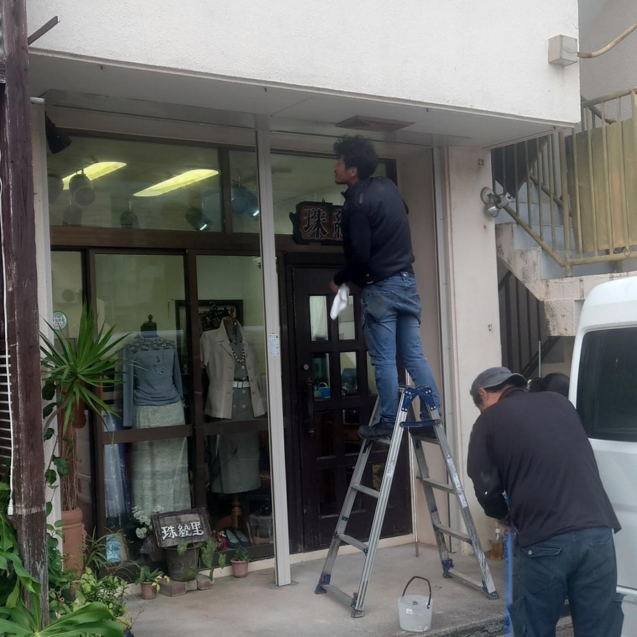与那原、A様店舗にてシャッター取替え工事。