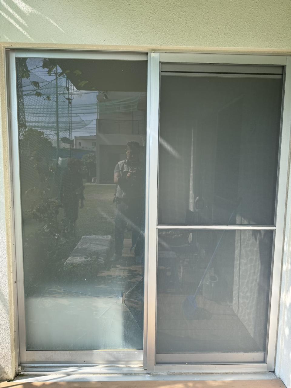 豊見城市M様住宅にてガラス割れ替え修理。 ガラスが割れて危ないので、最短で対応させて頂きました。