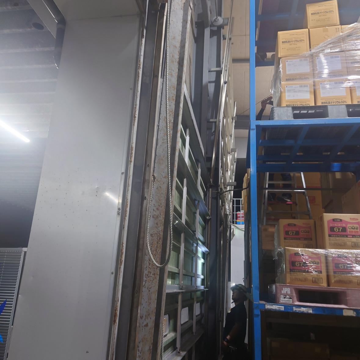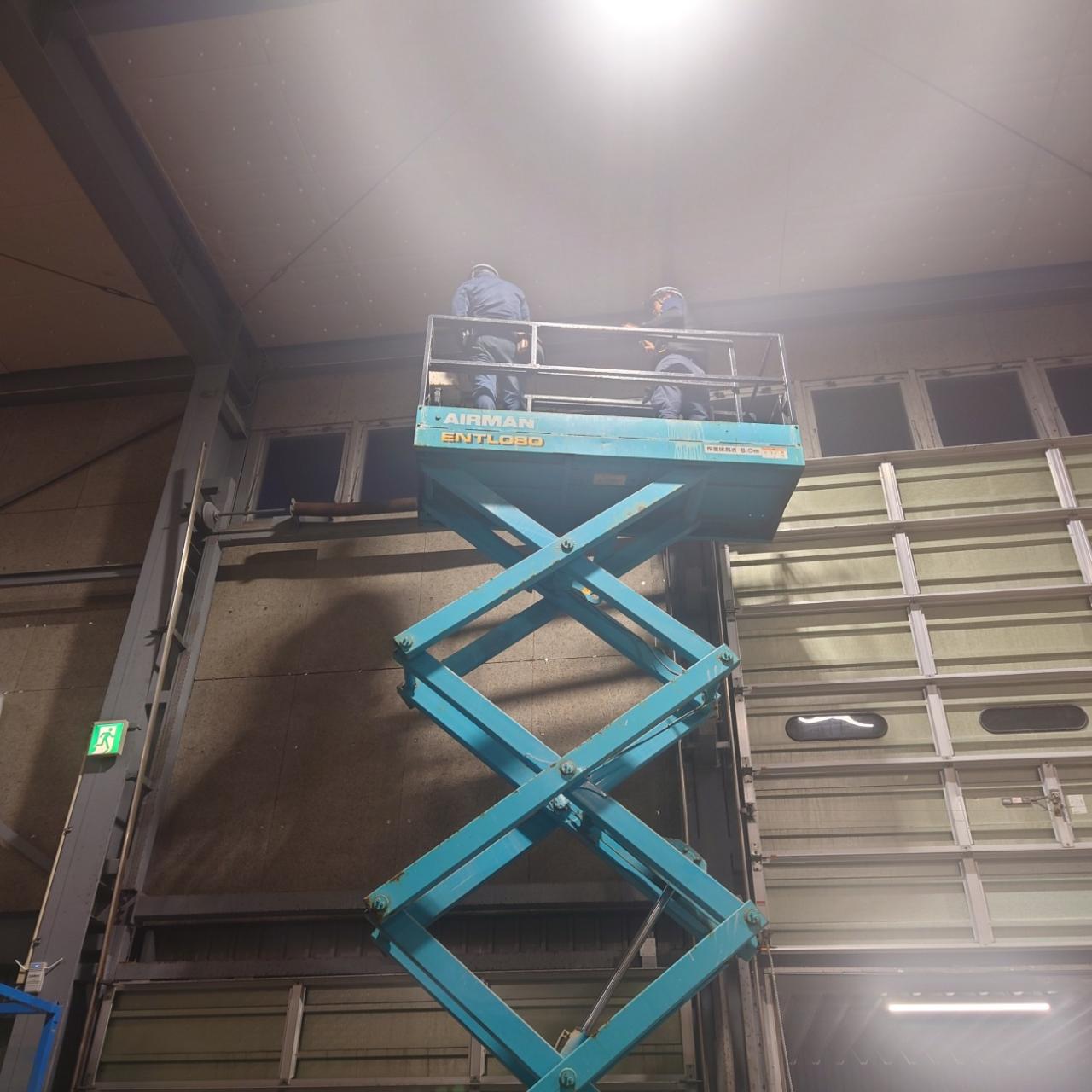 日曜日に石垣から帰り、祝日の夕方にて、西原町H様工場シャッター点検。 スカイタワーを借り、隅から隅まで点検。 スカイタワーが入らない所は脚立をたて確認しました。